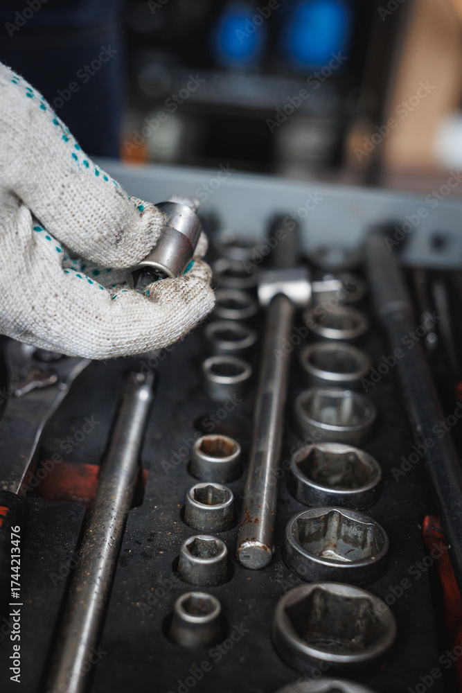 A detailed closeup of a persons hand firmly gripping a wrench tool