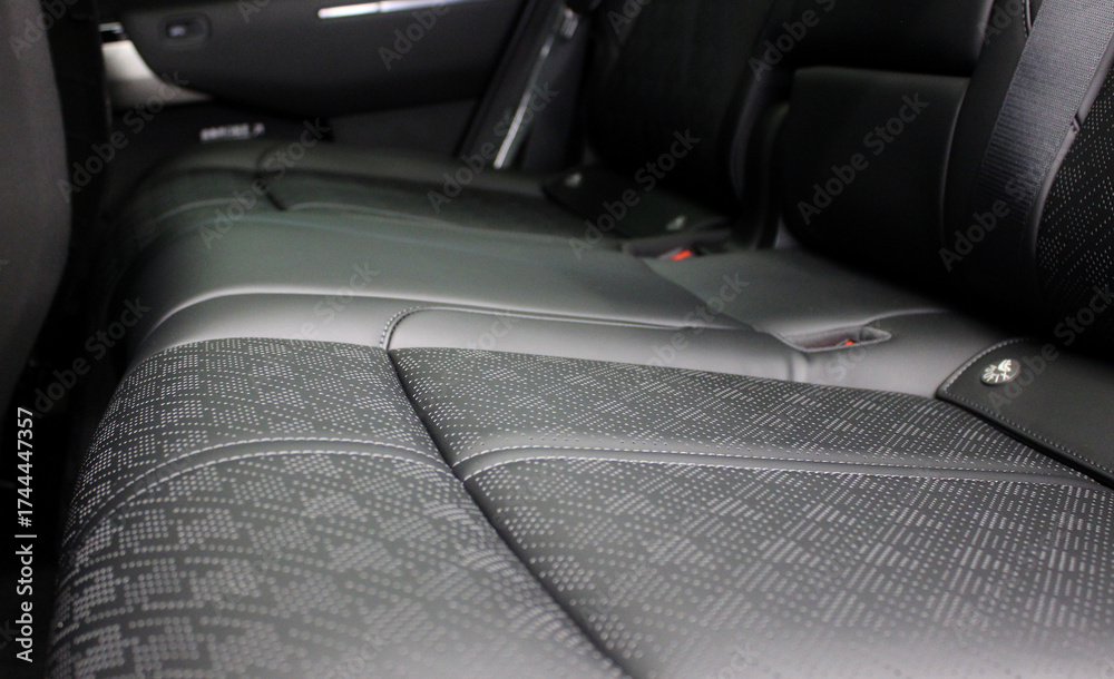 The rear seats of a large family car are upholstered in eco-leather of varying textures