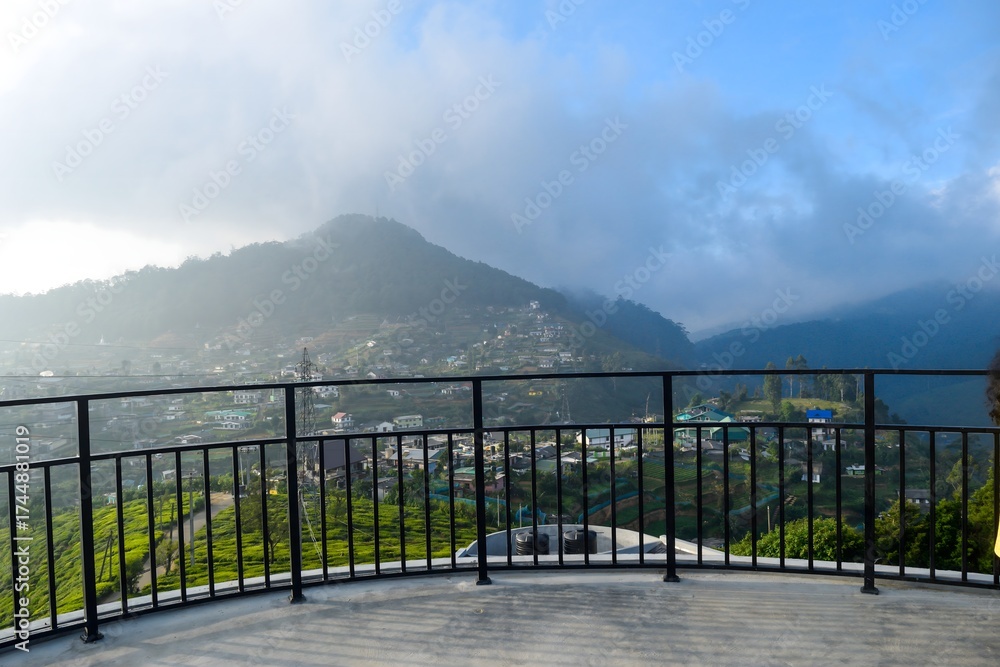 morning in the mountains | Mountain view from balcony overlooking misty valley and tea estates