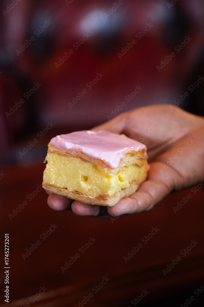Vanilla Slice with pink icing - a favourite bakery item in Australia