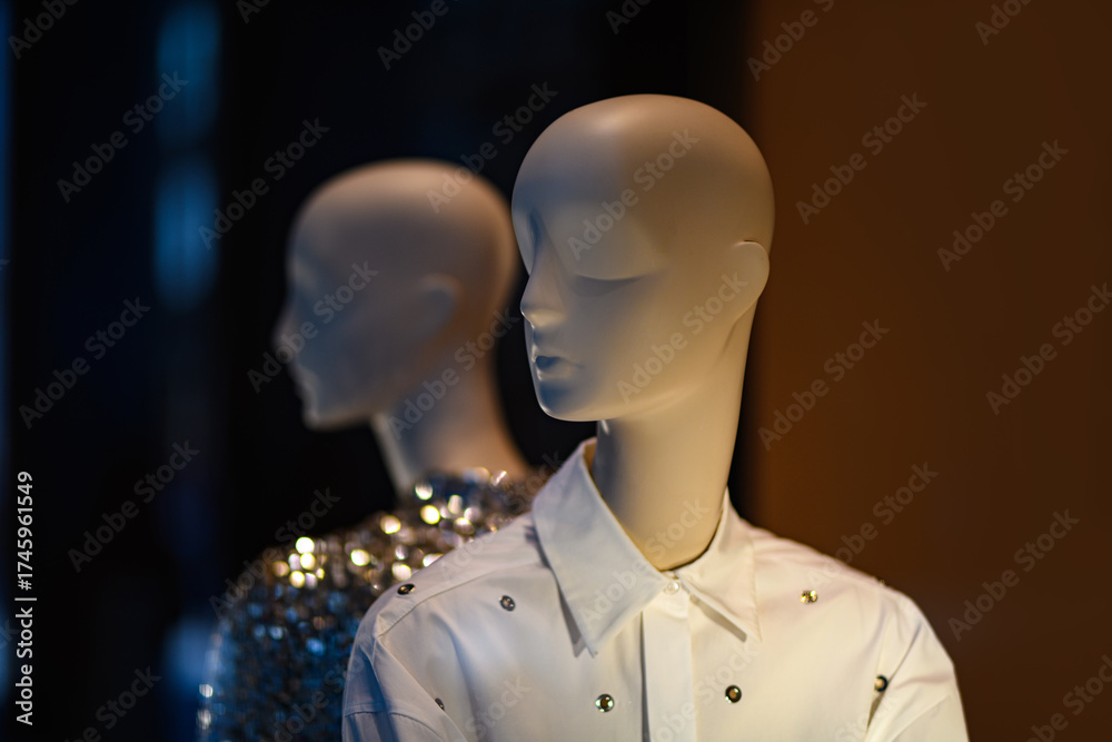 Season sale. Stylish dummy. Mall shopping center. Dummy. Fashion beauty. Stylish Mannequin in boutique. Fashion style. Season sales. Fashion and Style. Women outfit, shopping concept. Dummy in mall.