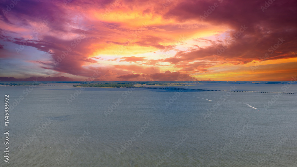 Aerial shot of the vast waters of the Atlantic ocean in Ocean City Maryland USA