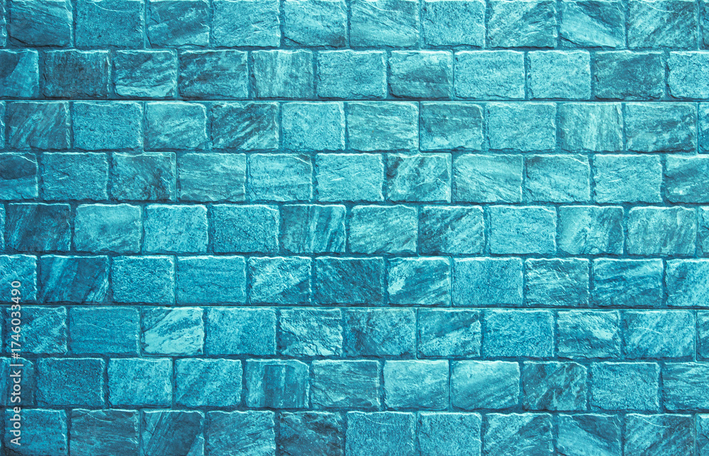Blue brick wall texture background. Brickwork and stonework flooring rock old pattern decorative.