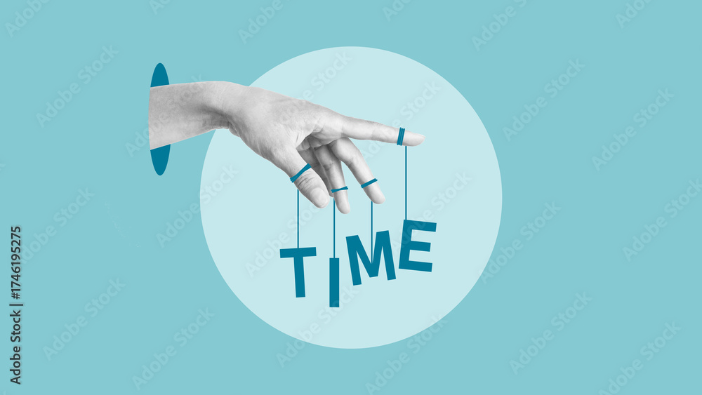 Control time - entrepreneur manipulates time using a clock puppet. Time management concept for business success