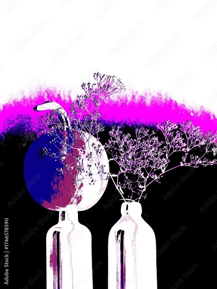 Creepy Halloween wallpaper, vertical. Modern autumn, negative stylized image, image manipulation. Pink, blue, black, white