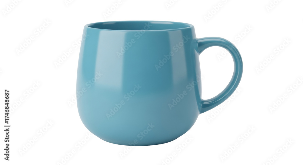 Isolated turquoise mug on a neutral surface, ceramic teacup for hot beverage at breakfast