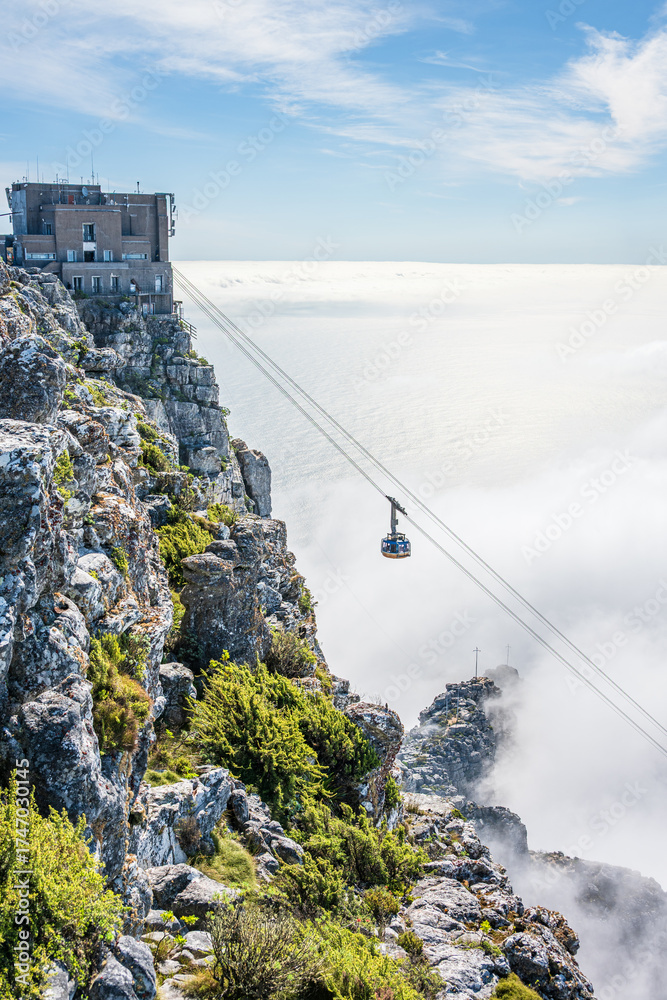 View of Cable Car going to the top of table mountain, Cape Town, South Africa