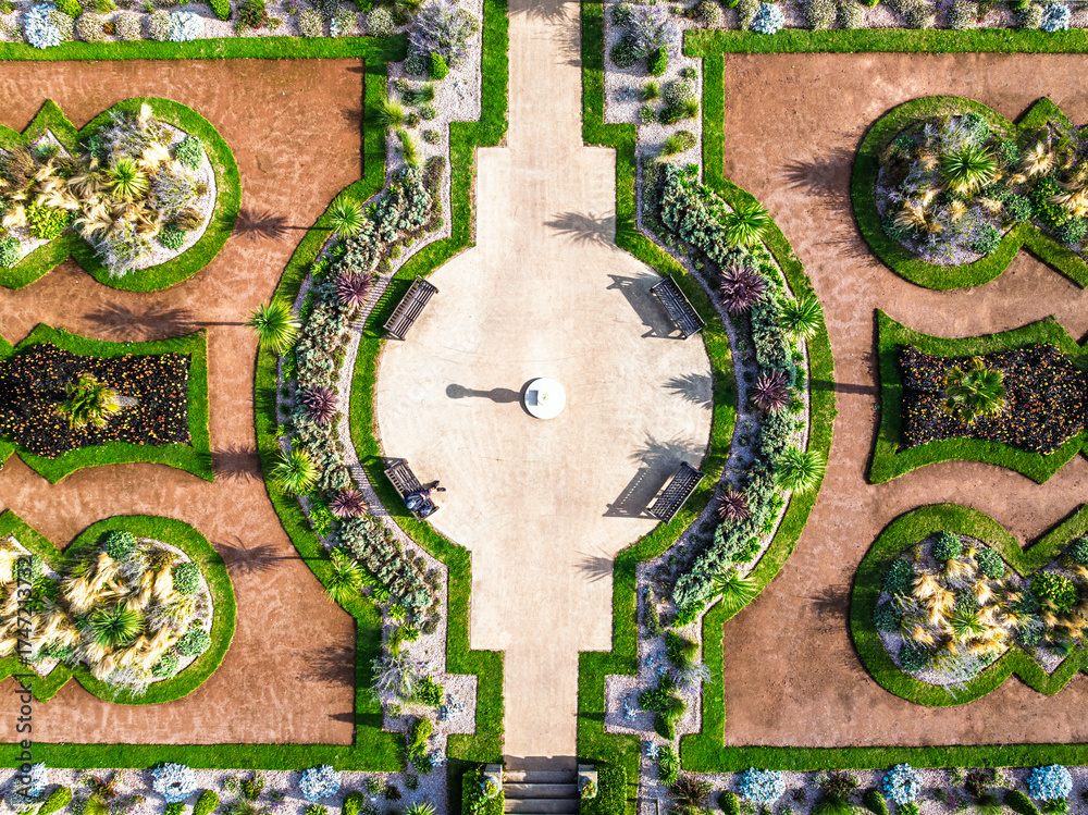 Top Down view over Italian Garden in Abbey Park from drone, Torquay, Torbay, Devon, England