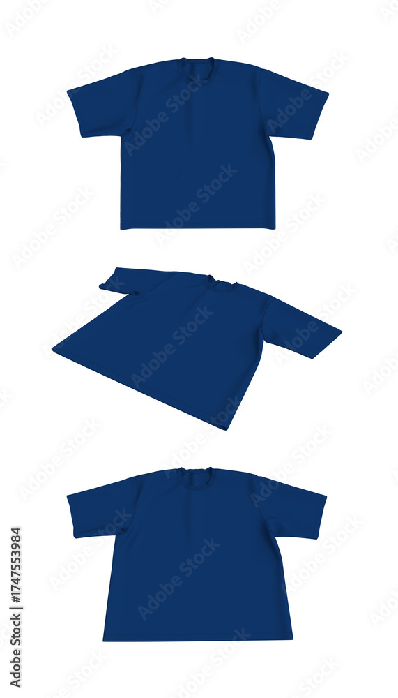 3D rendering of oversized short sleeve crew neck t-shirt mockup. Flat lay tabletop view showing front and side angle