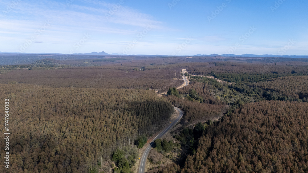 Drone image Of Highway Through the Tasmanian Tarkine Region with View Towards Cradle Mountain