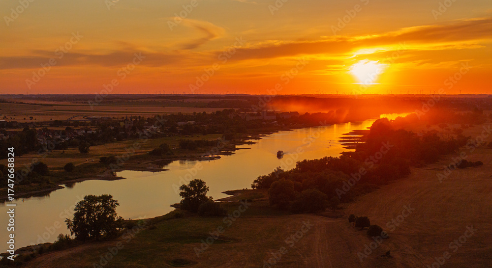 Sonnenuntergang Elblandschaft Sachsen Anhalt Deutschland