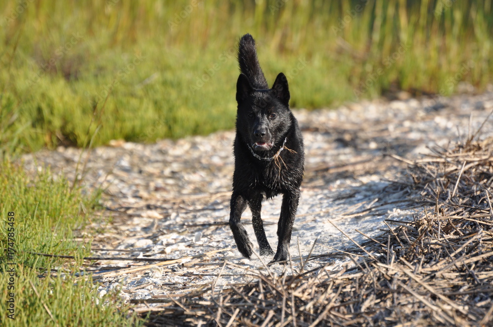 Japanese Breed Dog, Kai Ken, Running on the Beach