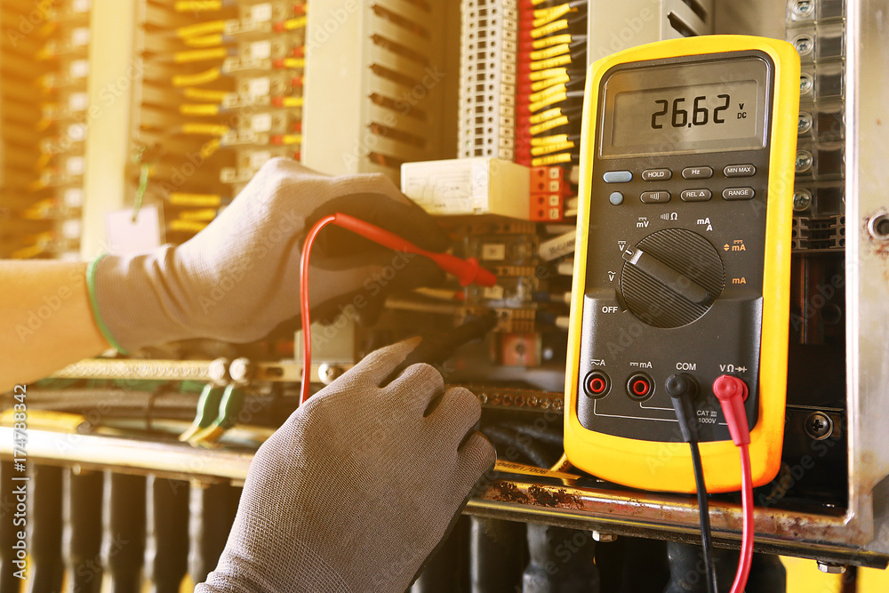 Electrical terminal in junction box and service by technician. Electrical device install in control panel for support program and control function by PLC. routine visit check equipment by technician.