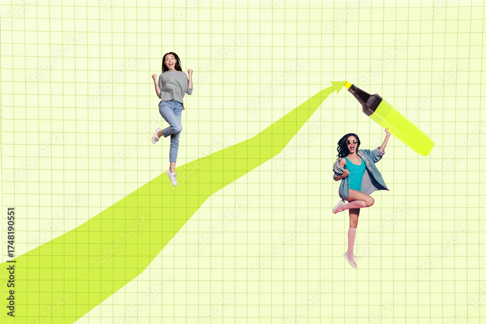 Banner pop 3d zine full collage of happy businessman businesswoman run marker arrow development career chance promotion employee