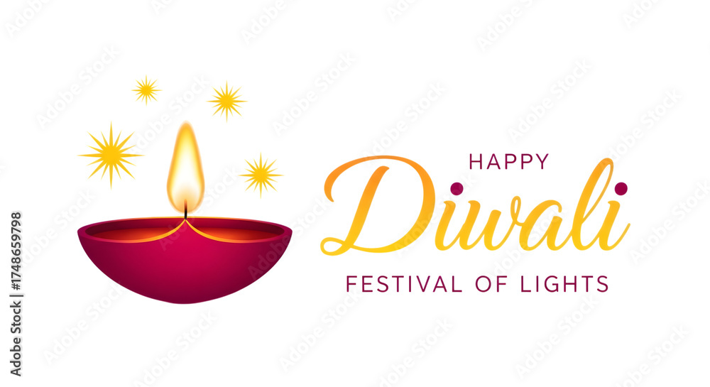 Happy diwali festival of lights with a lit diya isolated on transparent background