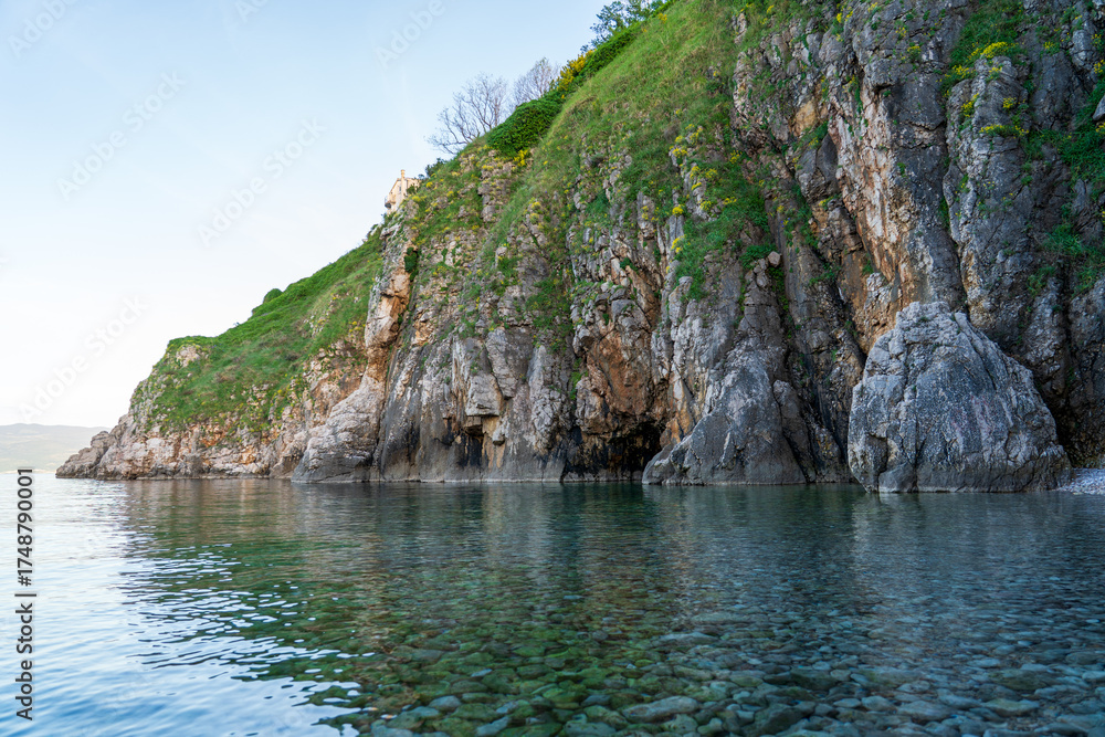Vrbnik, Croatia - April 20, 2025: Panoramic view of the mountains and sea. Beautiful landscape of mountains, sea, and forest