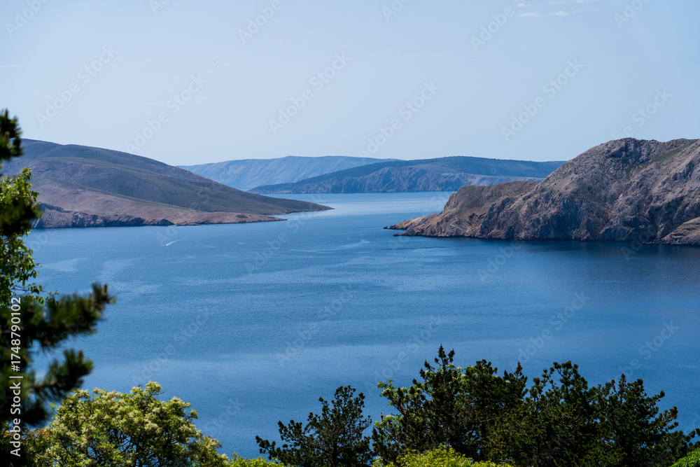 Prvić Island and Sveti Grgur, Croatia - April 20, 2025: Panoramic view of the mountains and sea.