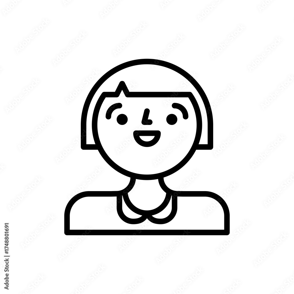 Simple Outline Avatar Icon of a Smiling Woman with Bob Haircut and Collar Detail Isolated on Transparent Ba
