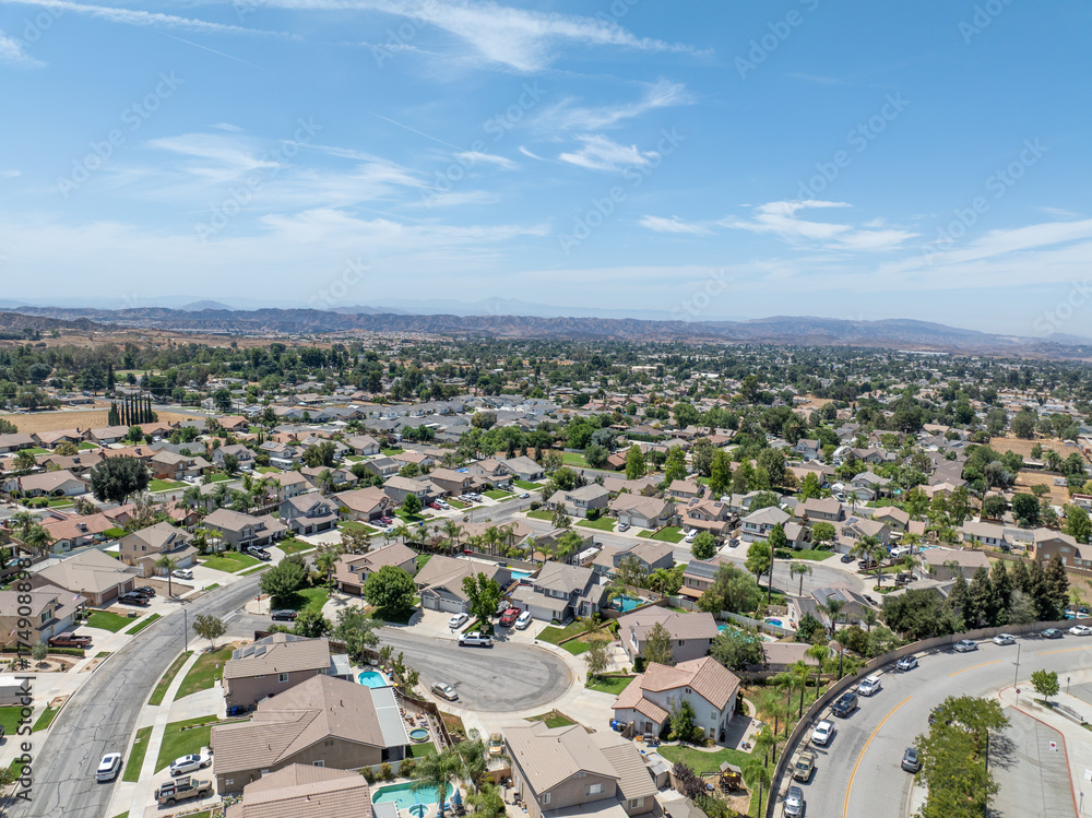 Aerial view of of house in Yucaipa city, in San Bernardino County, California, United States. High quality photo