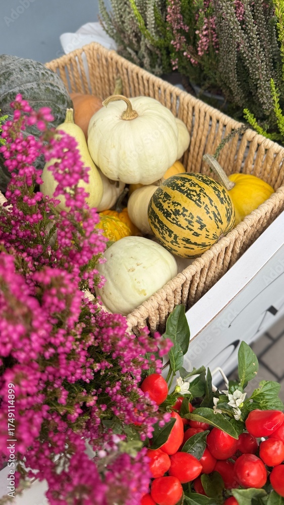 vegetables and fruits, autumn cafe decorations, outdoor restaurant decor