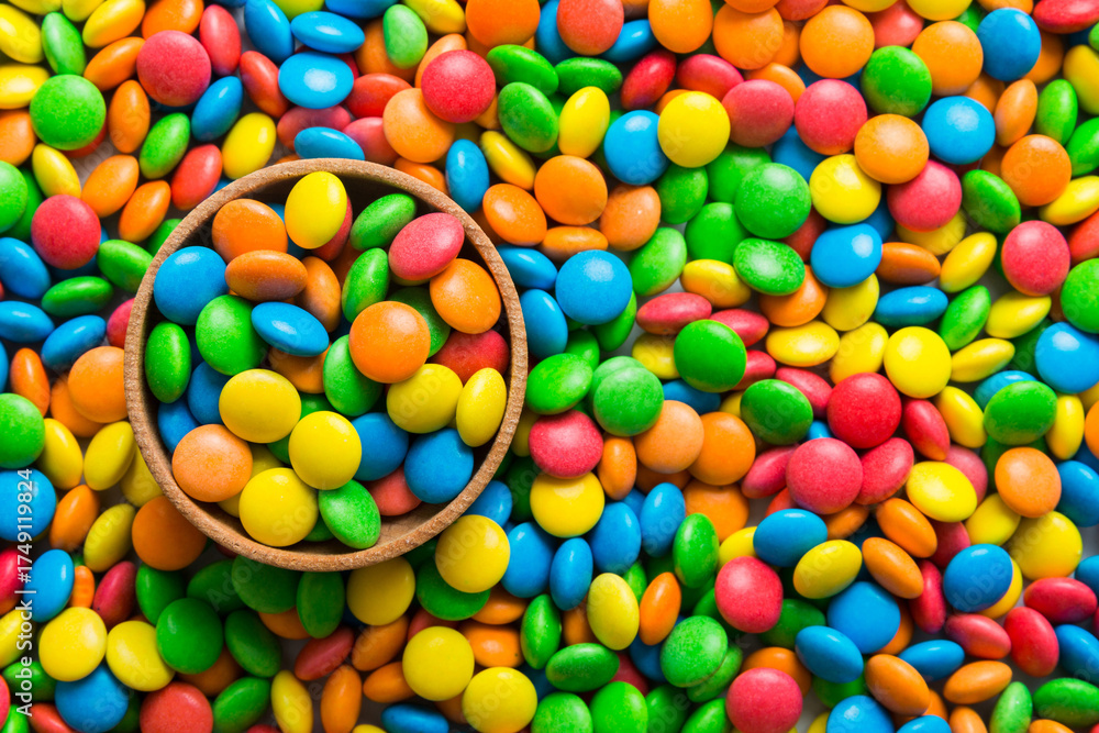 colorful candies as background top view. Seamless pattern with candy. Many sweet candies close-up