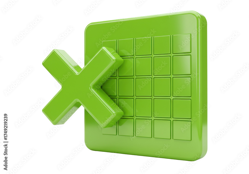 Green calendar with cross mark isolated PNG, cancellation icon for schedule management and appointment planning