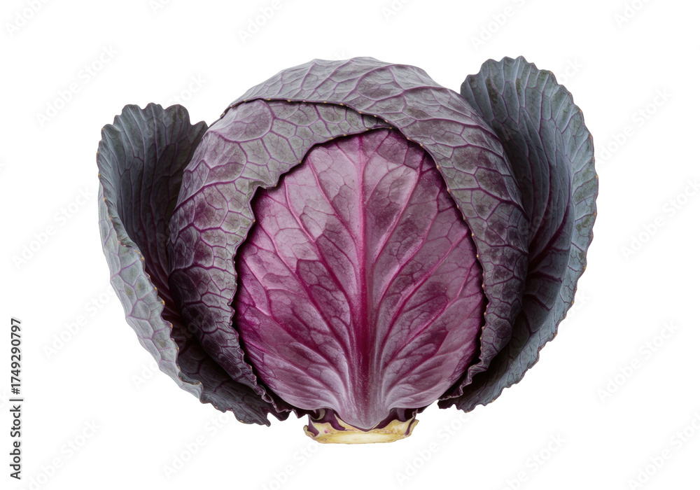 Vibrant red cabbage isolated on transparent background, fresh vegetable for healthy eating and vegetarian recipes