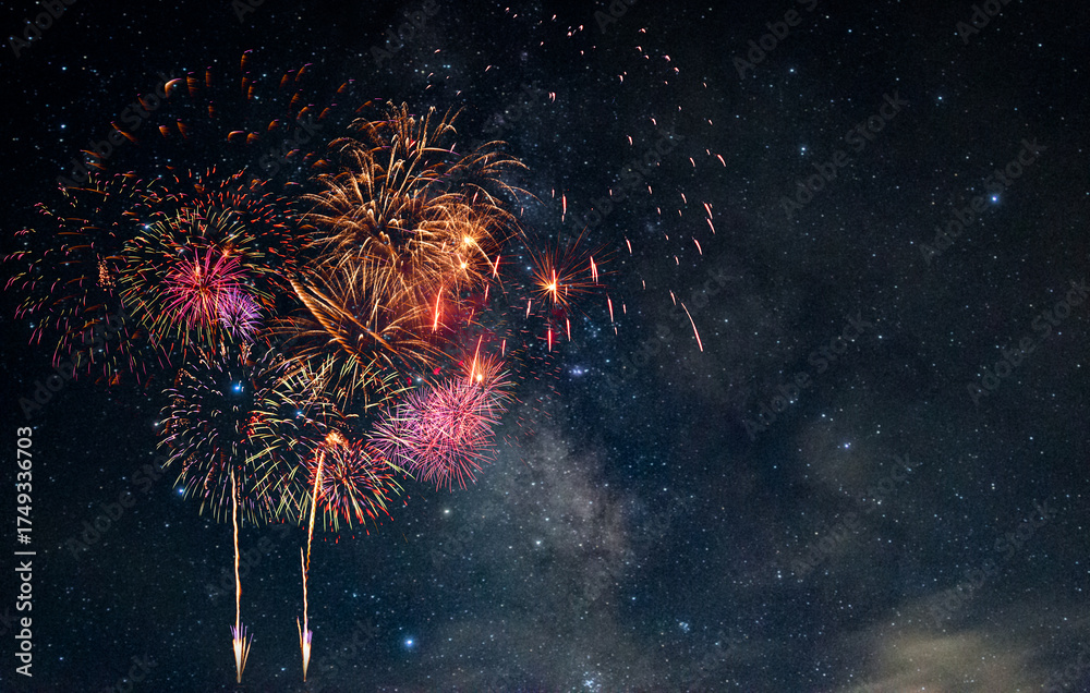 Fireworks with blur milky way background