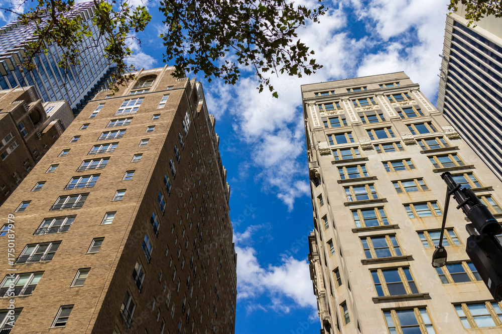 Skyscrapers, office buildings and hotels in the city skyline at Rittenhouse Square in Philadelphia Pennsylvania USA