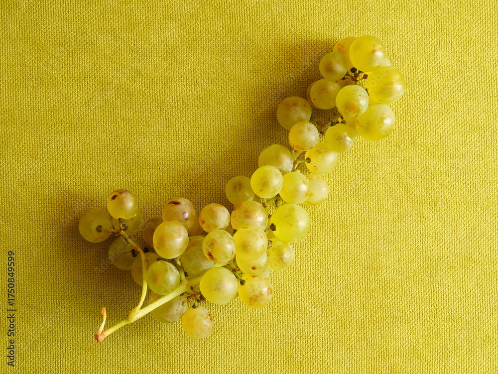 Closeup of yellow grapes on textured cloth