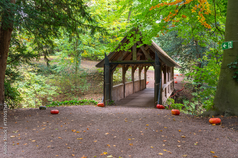 Wooden bridge in the park during autumn