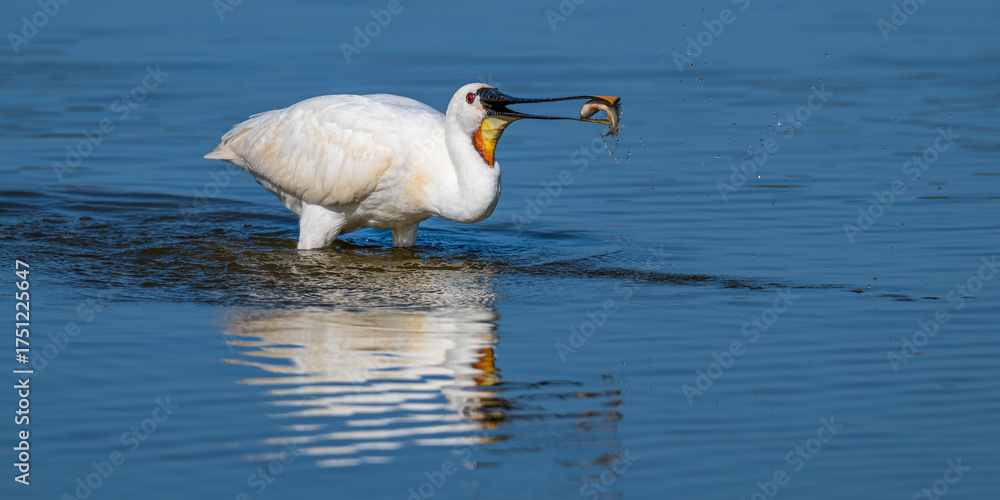 Les Spatules blanches (Platalea leucorodia - Eurasian Spoonbill) à la pêche