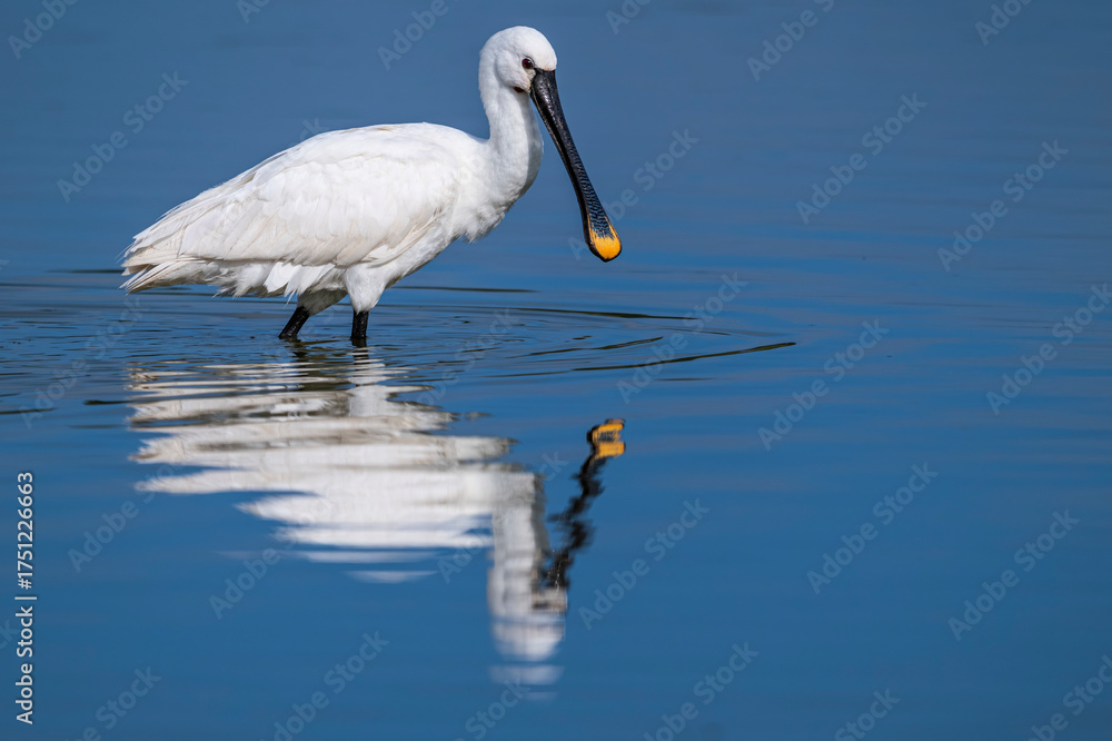 Les Spatules blanches (Platalea leucorodia - Eurasian Spoonbill) à la pêche