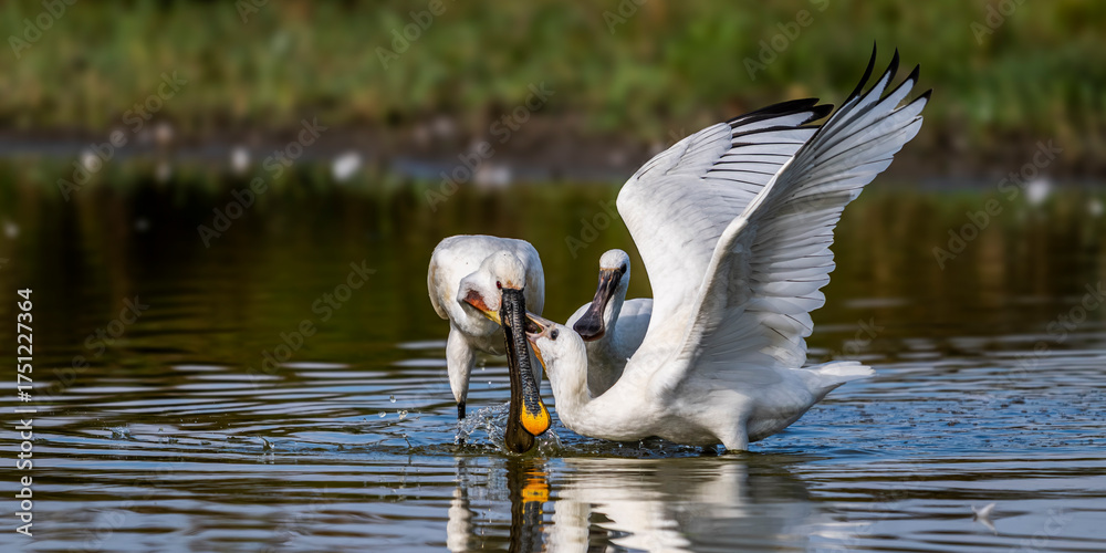 Les Spatules blanches (Platalea leucorodia - Eurasian Spoonbill) à la pêche