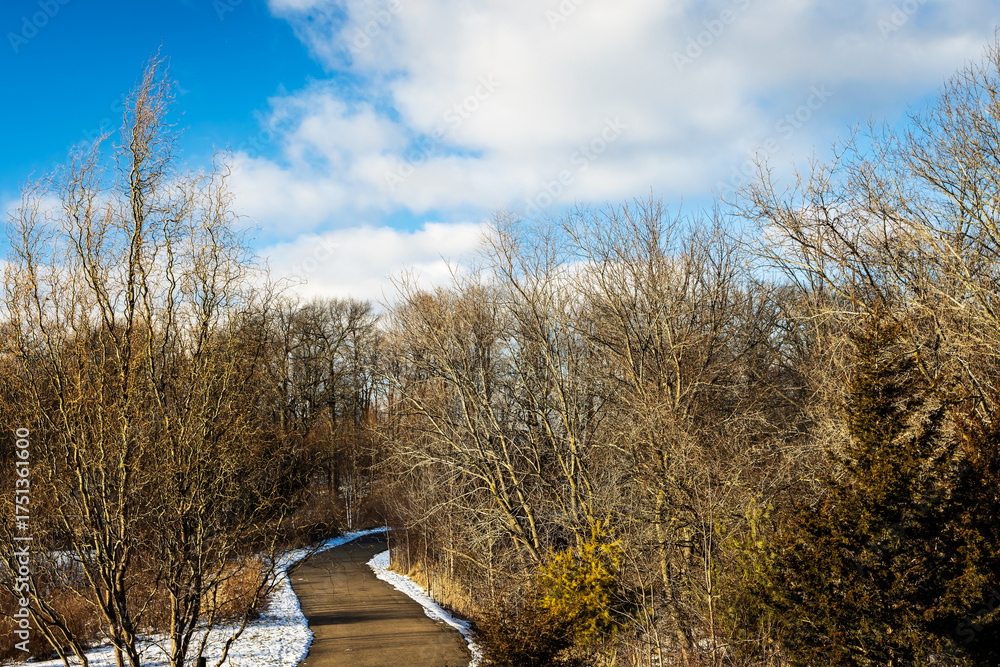Pedestrian Walkway in Winter, snow covered, Ancaster, Hamilton, Ontario, Canada