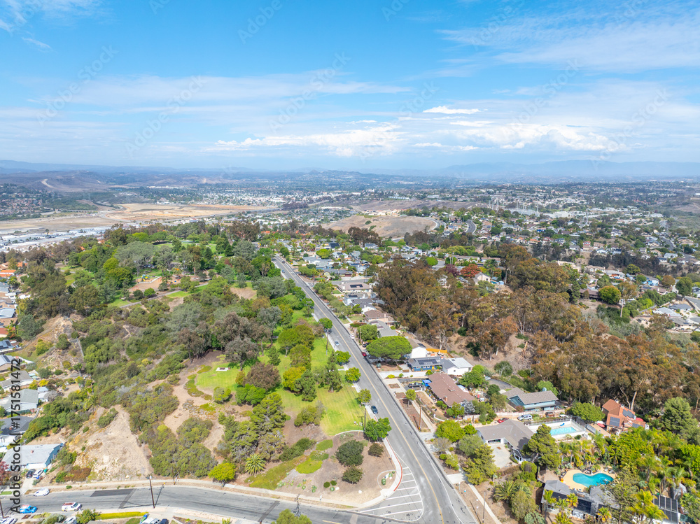 Aerial view of middle class houses in the valley of Oceanside town in San Diego, California. USA.