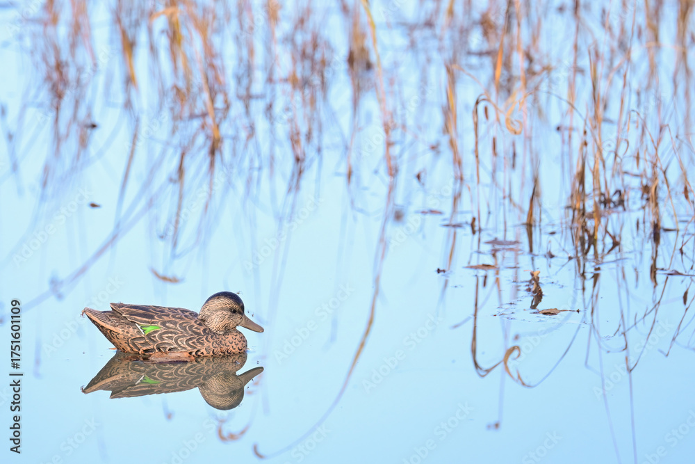A waterfowl hunter's duck decoy waits to attract its live counterparts to Reflections Lake, Alaska.