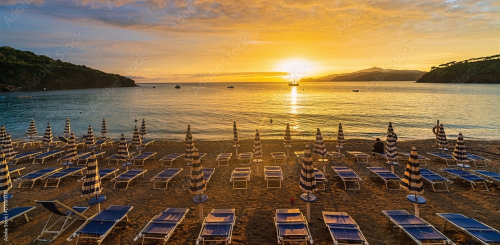 Pareti, Elba, Tuscany, Italy, Europe - 23 September 2025, sunset on the beach
