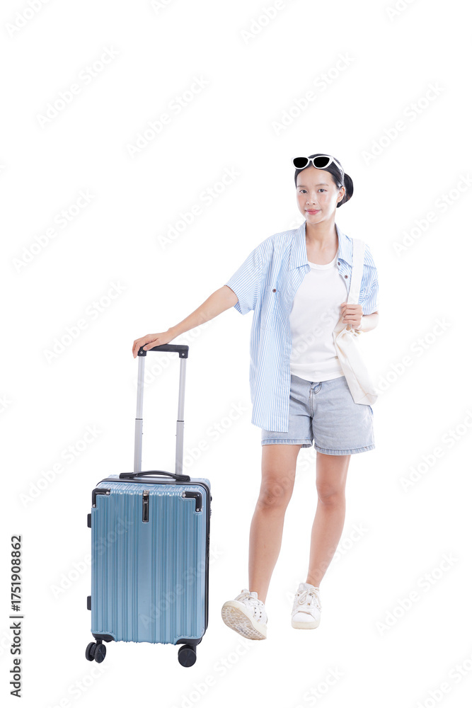 Ready for Journey: A young traveler, stands poised with luggage in hand, ready for an exciting adventure. capturing the essence of wanderlust.