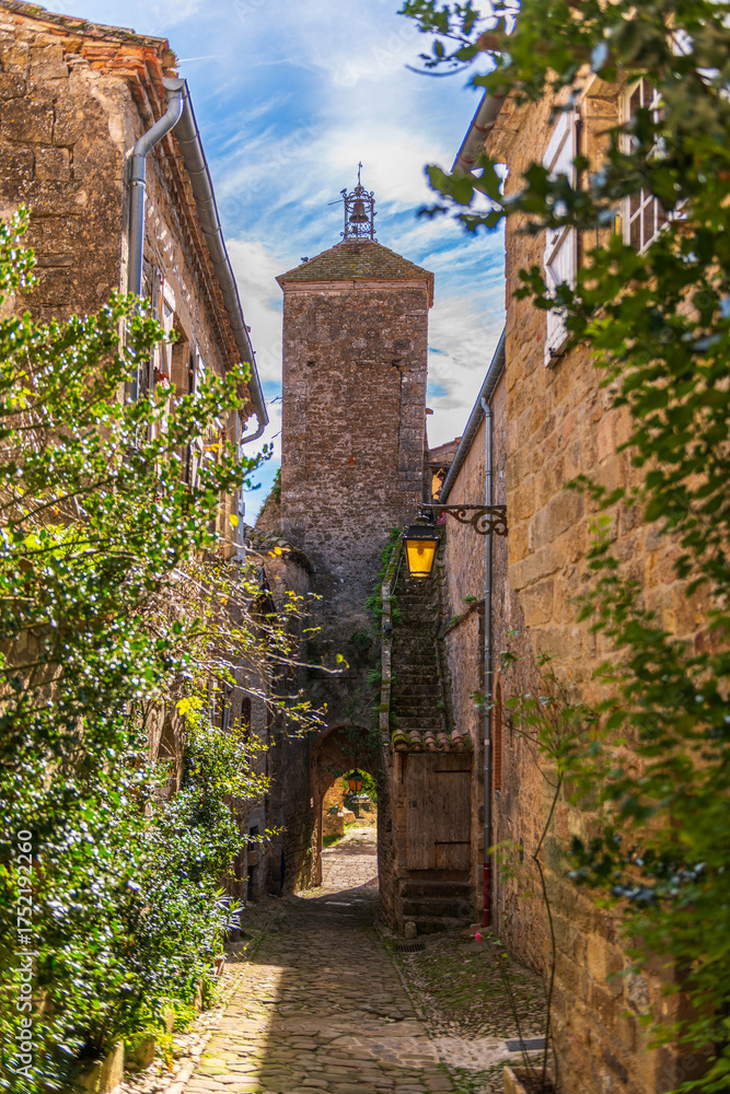 A street in the medieval village of Penne, in the Tarn region of Occitanie, France