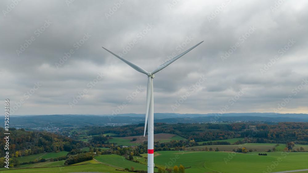 Wind energy, clean power, and renewable electricity generation. Dramatic landscape.