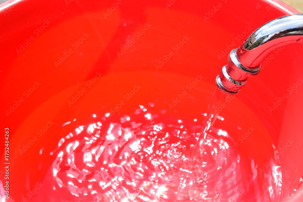 給水イメージ / 水道の蛇口からバケツへ給水中