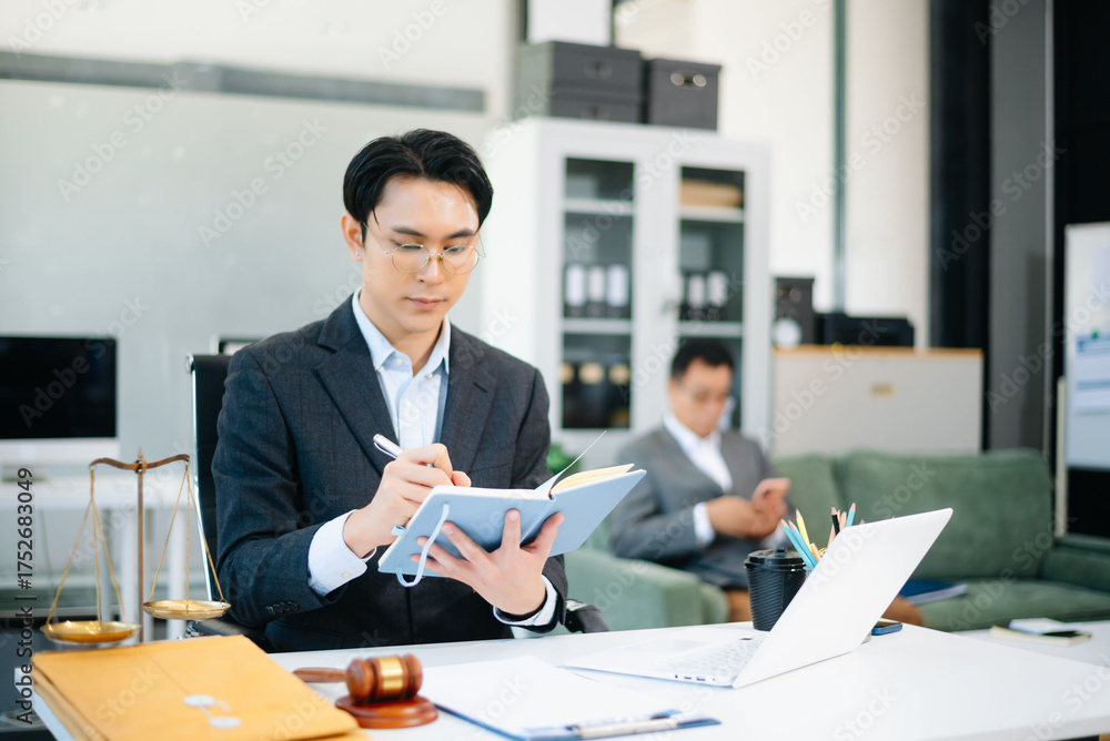 Asian business team and lawyers discussing contract papers sitting at the table. Concepts of law, advice, legal services.