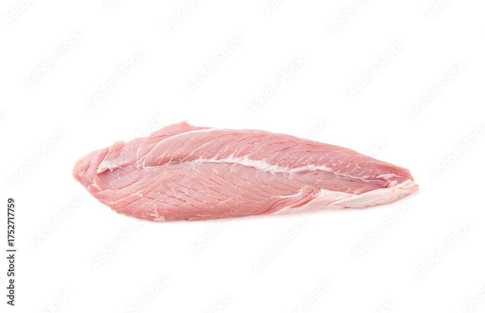 Raw turkey fillet isolated on white background.