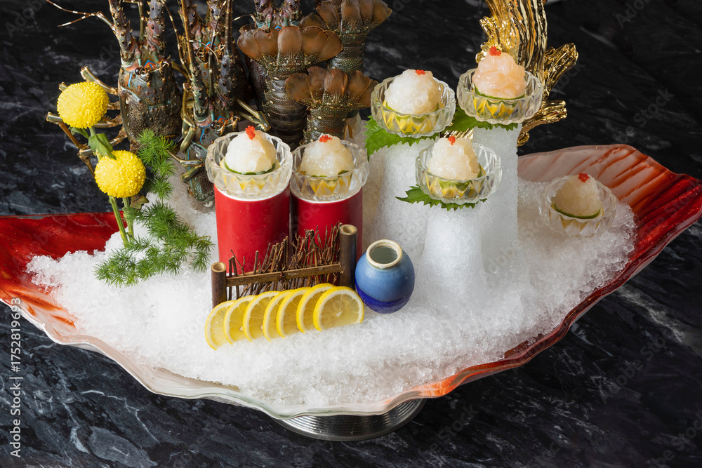 Luxury Seafood Platter with Delicate Raw Lobster Meat Presentation