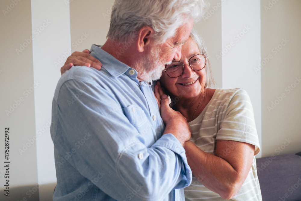 Senior couple spending quality time together at home, sharing a tender and loving moment that reflects affection, companionship, and a healthy, peaceful retired lifestyle
