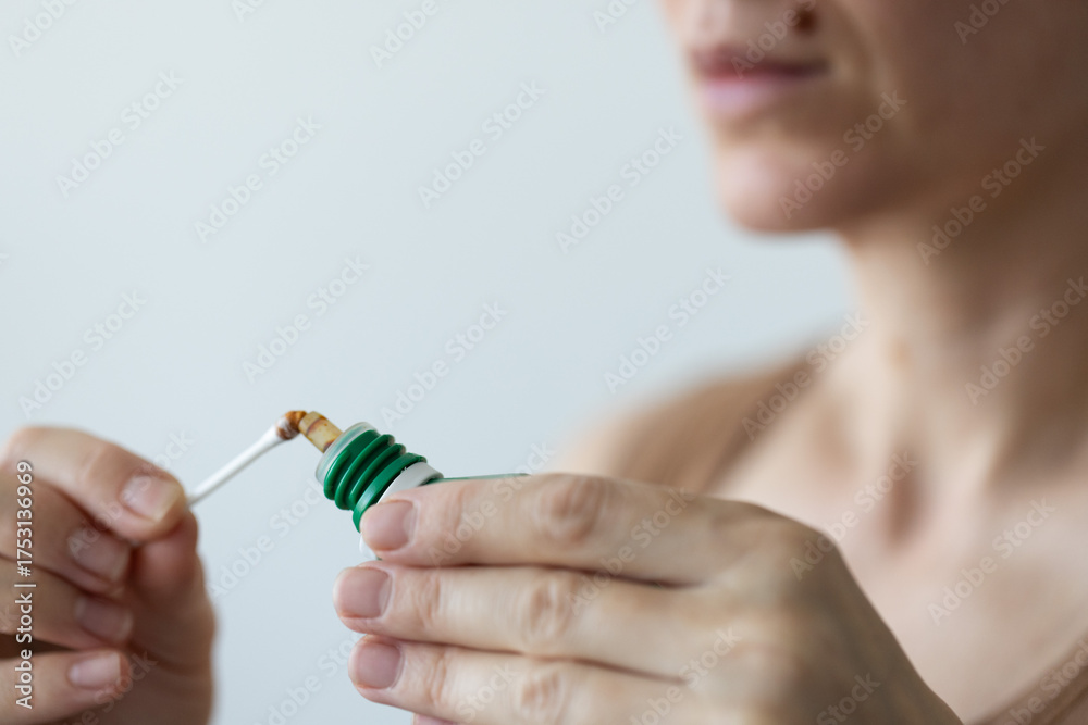 Treatment of wounds after removal of the moles with betacine Closeup.