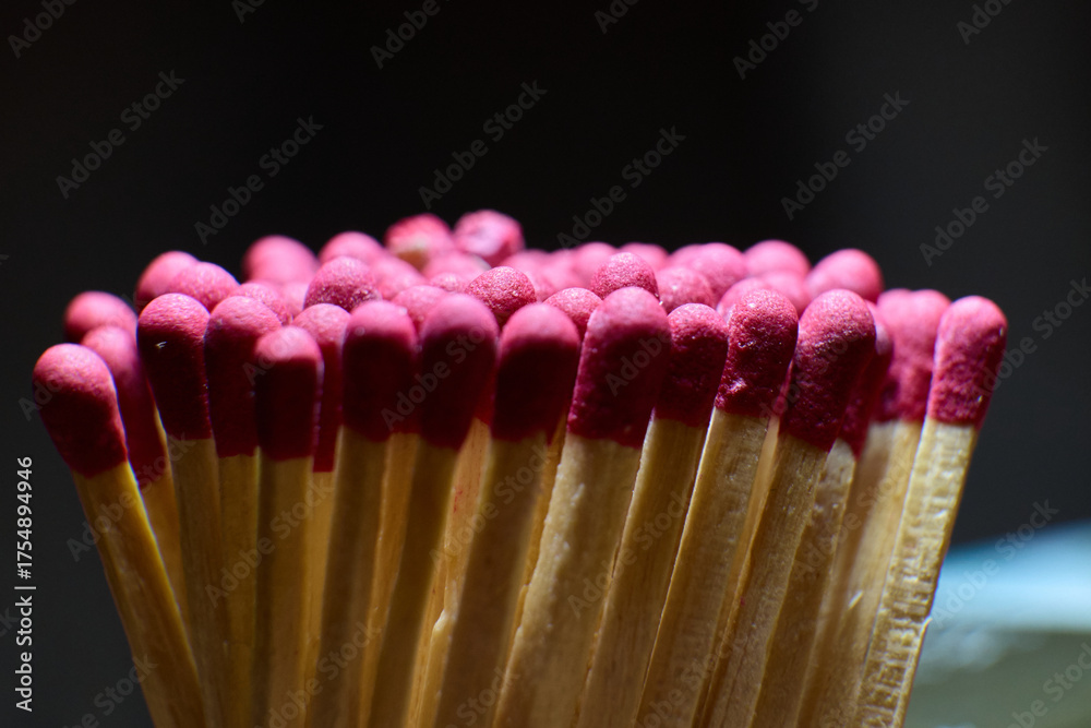 A close up view of matches stacked in a cluster