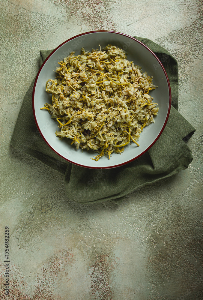 Jonjoli, Colchian klekachka, Georgian appetizer, pickled jonjoli, no people