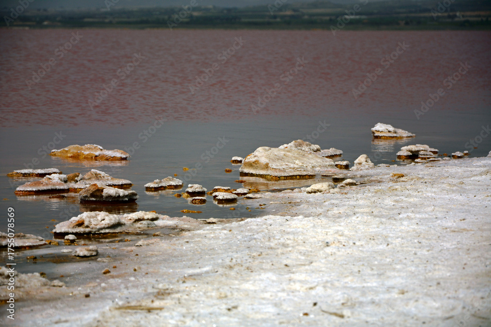 różowe jezioro, słone jezioro, Torrevieja, Hiszpania, Salt Lake in Torrevieja, lagoons for salt extraction in alicante, the pink lake of torrevieja, Costa Blanca, province of Alicante, Spain